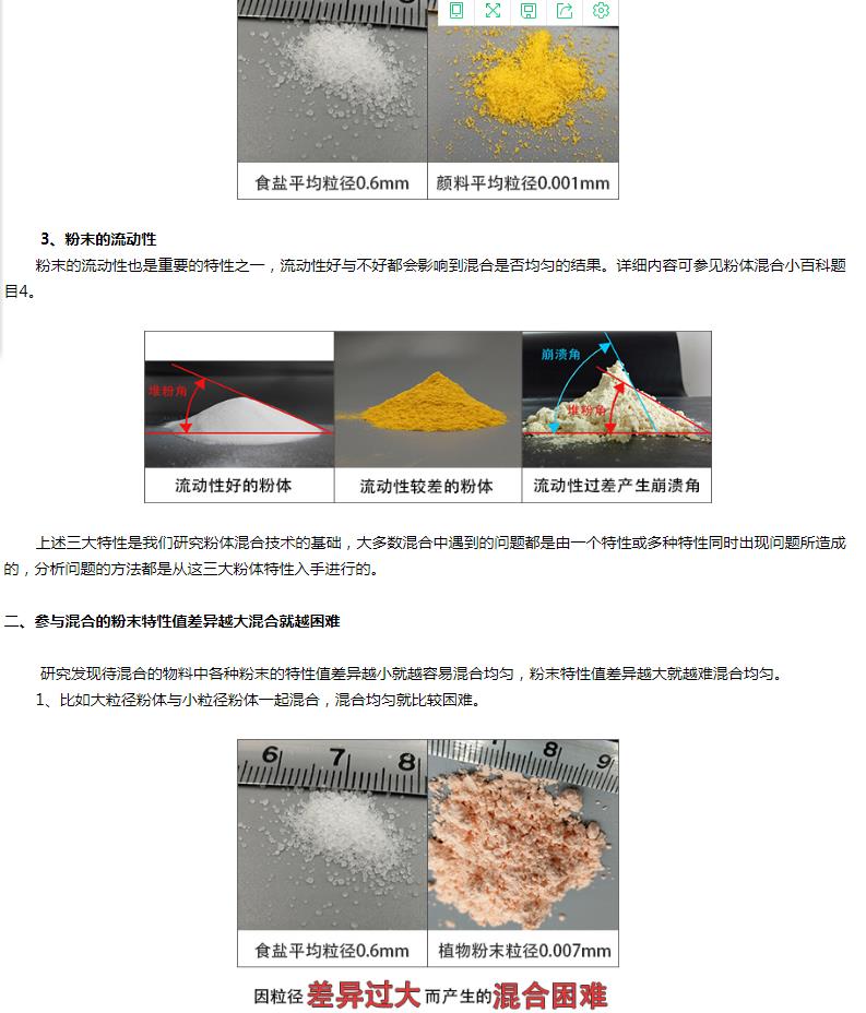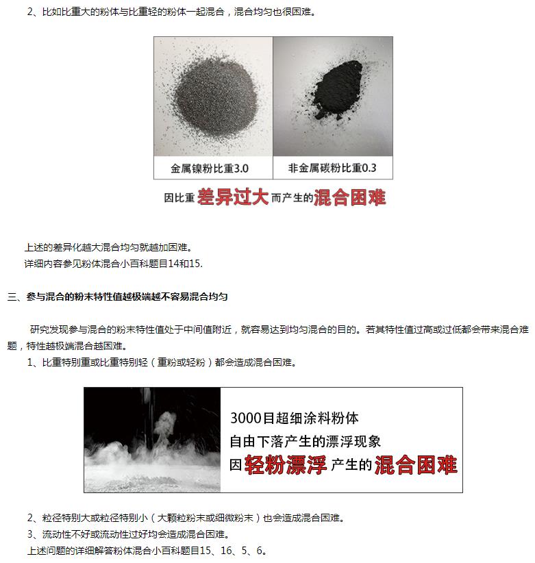 解決方法是混合之前要針對這樣的粉體做相應的混前預處理。詳細內容參見粉體混合小百科題目7.