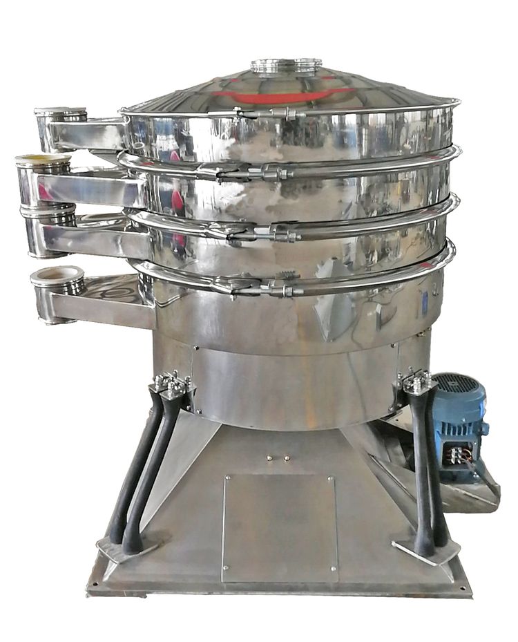 搖擺篩是一種仿人工搖動的低頻旋振篩,其原理是:瞬時運動為沿徑向的位移和以此位移為軸的圓周運動的合成(螺旋運動),即可調節(jié)偏心距的激振器產生了非線性三維運動,物料也產生同樣的近似手動作業(yè)的運動,從而達到篩分之目的,再配合篩分附件可獲得更加理想的篩分效果,適合于圓形狀、圓柱狀、片狀、乃至 于規(guī)則形狀易堵網且需要精細篩分的物料,是為了滿足大產量、高密度篩分用戶而設計的一種篩分設備,與一般圓形篩相比,它的篩分精度、效率、產量、篩網壽命能提高5-10倍,符合所有精細與超細范圍的粉末與微粒狀物料,特別適合難以處理的物料。還可單層或多層篩分,一次可篩分至6個粒度。