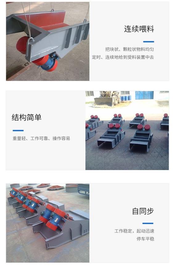 3、該機結構簡單,振動平穩(wěn),喂料均勻,連續(xù)性能好,激振力可調(diào);隨時改變和控制流量,操作方便;偏心塊為激振源,噪音低,耗電少,調(diào)節(jié)性能好,無沖料現(xiàn)象;若采用封閉式機身可防止粉塵污染。