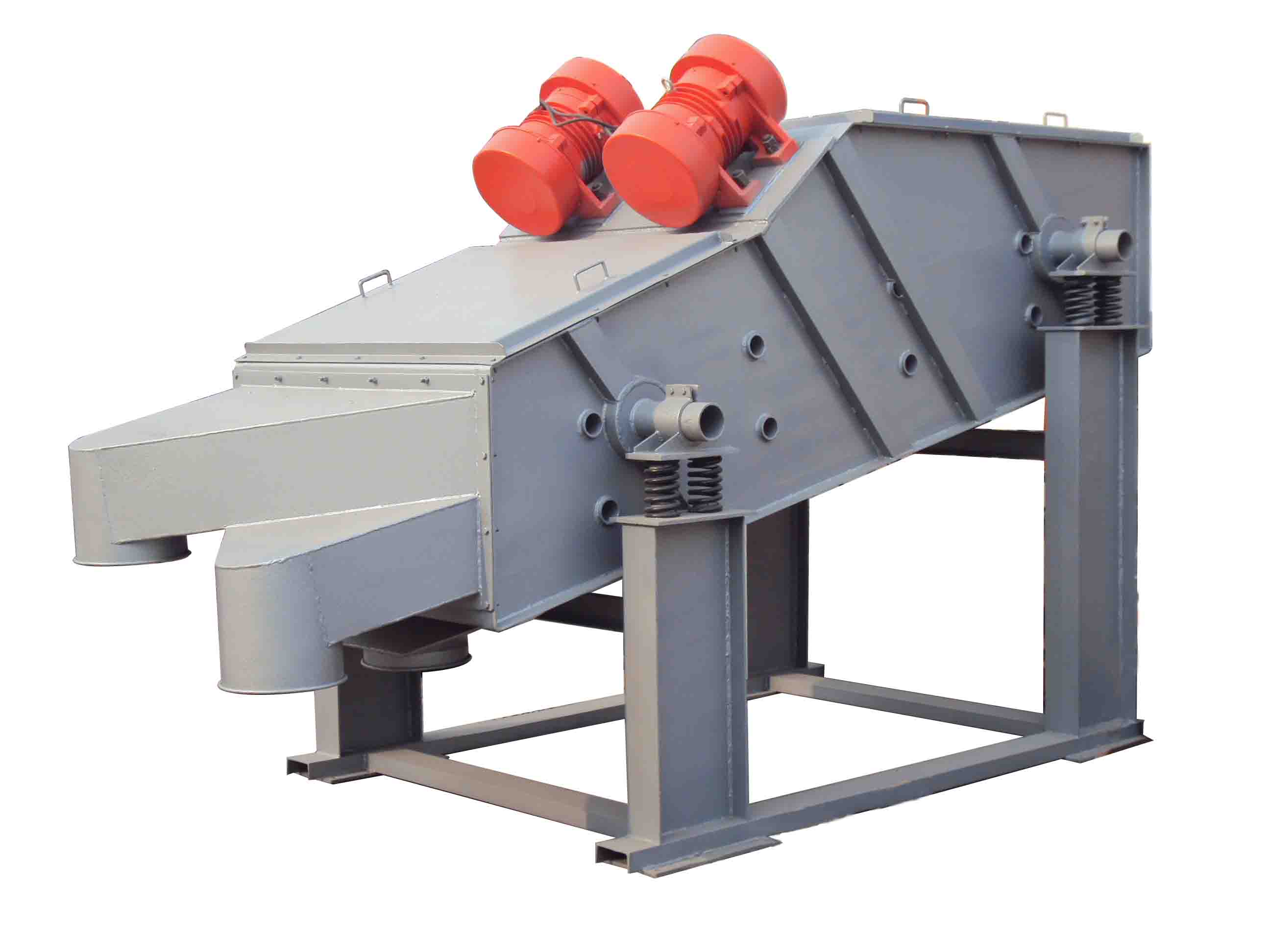 脫水振動篩主要由篩箱、激振器、支承系統(tǒng)及振動電機(jī)組成。