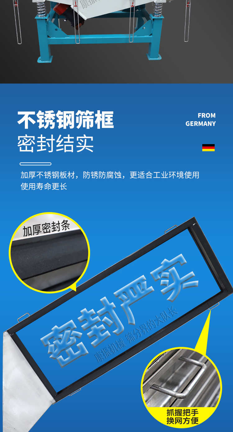 對粉狀、顆粒狀物料的篩選和分級,廣泛應用于塑料、磨料、化工、醫(yī)藥、建材、糧食、炭素、化肥等行業(yè).直線振動篩(直線篩)系新型的篩分設備,廣泛用于礦山、煤炭、冶煉、建材、耐火材料、輕工、化工等行業(yè)。