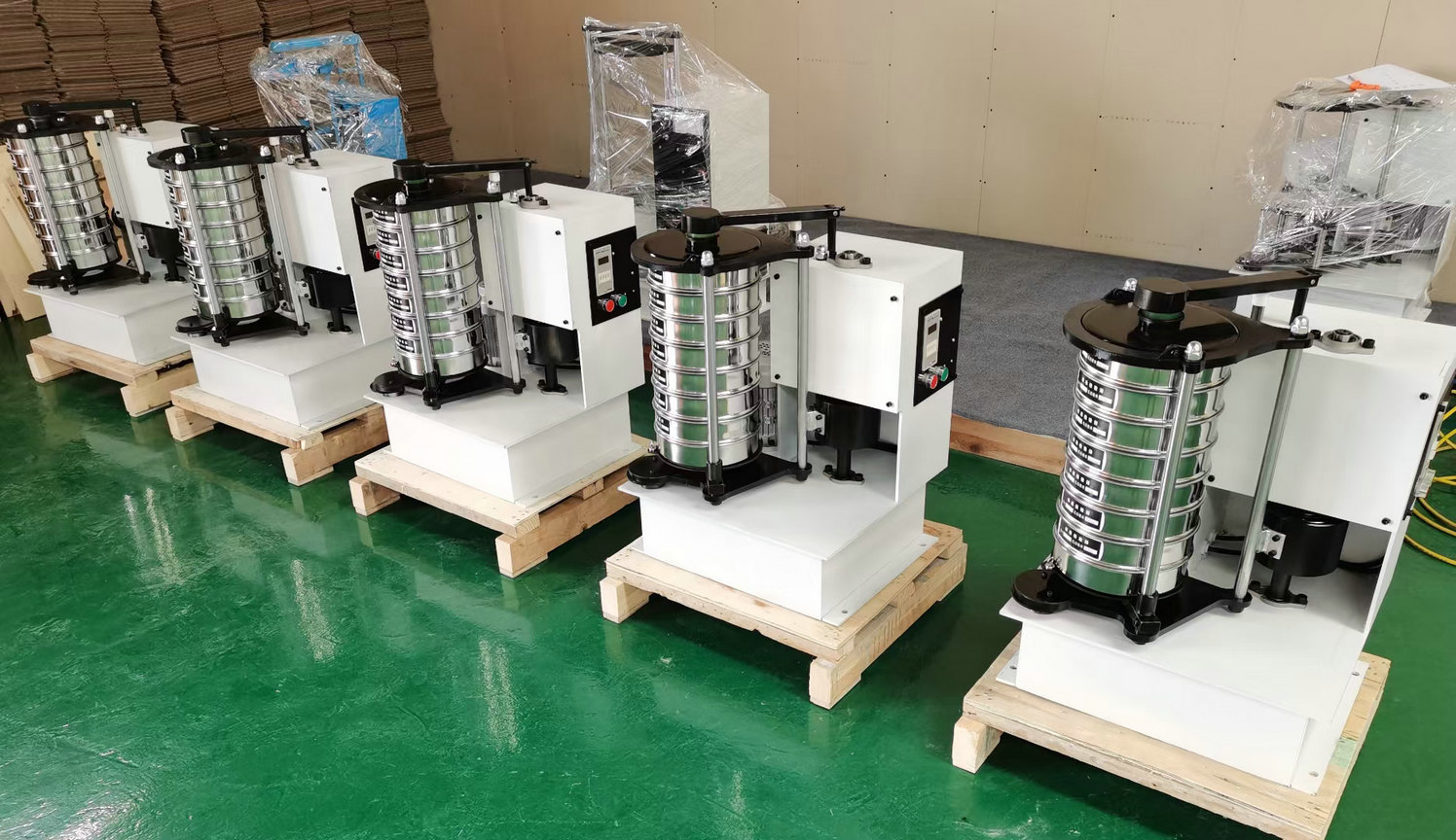 3.    把標準篩框按孔徑從小到大,從下到上依次疊放到篩框底座上。